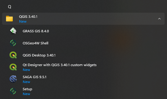 To check this, look at the QGIS Start menu folder (Start > All Apps > QGIS). You should see these programs installed as well: